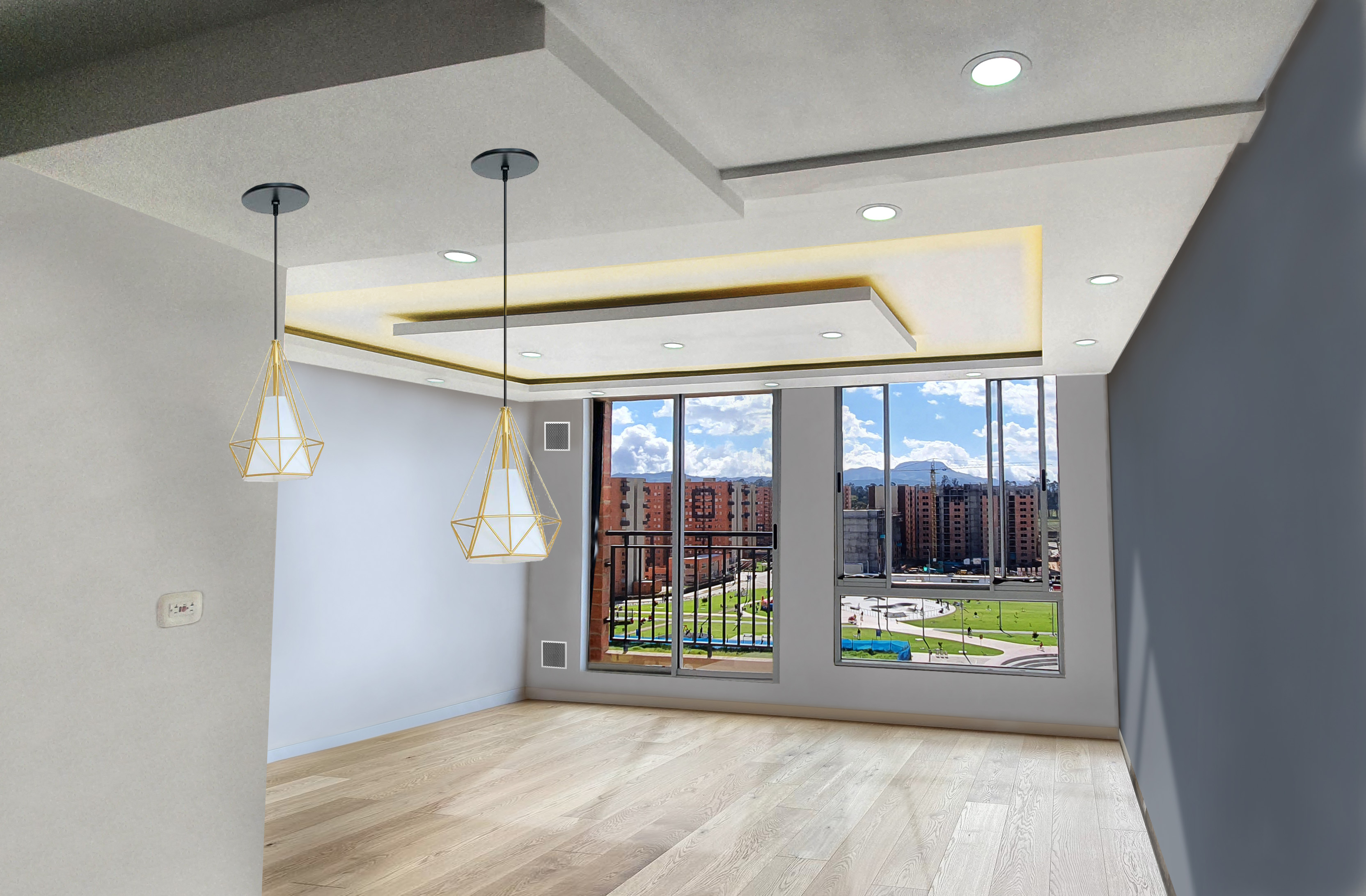 Se elaboro la remodelación del apartamento de obra gris, esto incluyo: Estuco, pintura, drywall, luces tipo balas, luces indirectas, carpinteria, cocina, baños, pisos y puerta de seguridad.